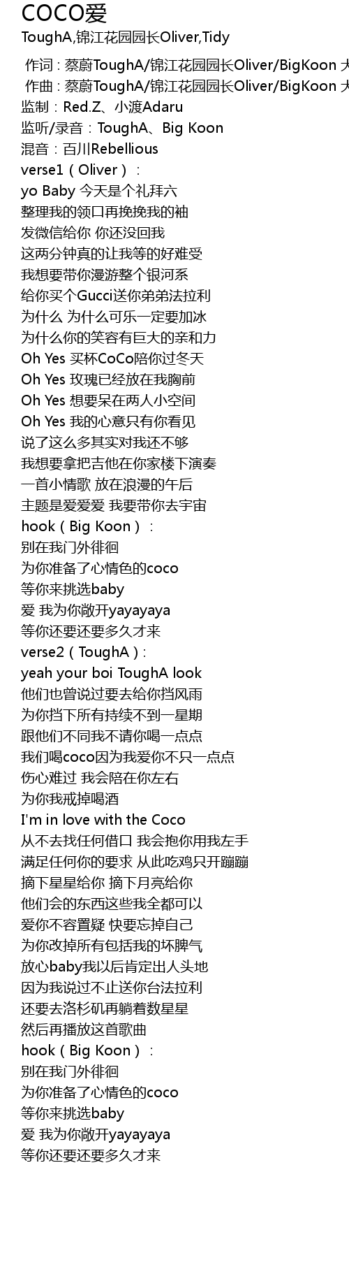 | [00:04.615] | 监听/录音:ToughA、Big Koon |