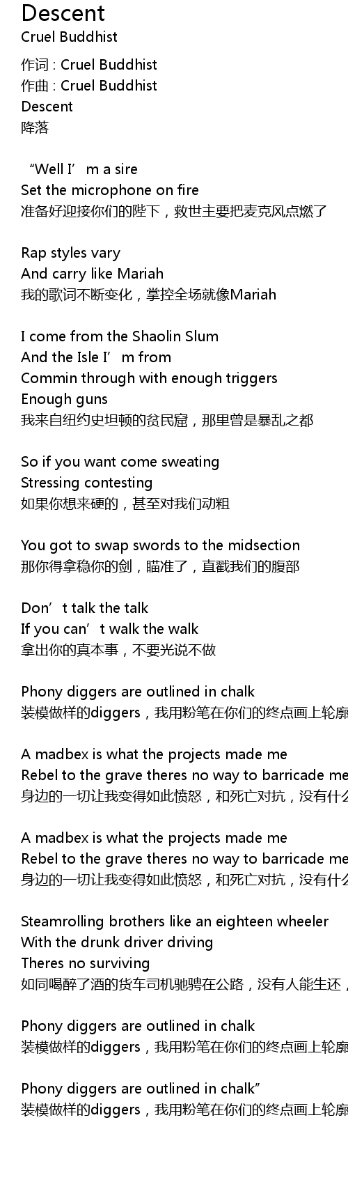 | 作词 : Cruel Buddhist | |
