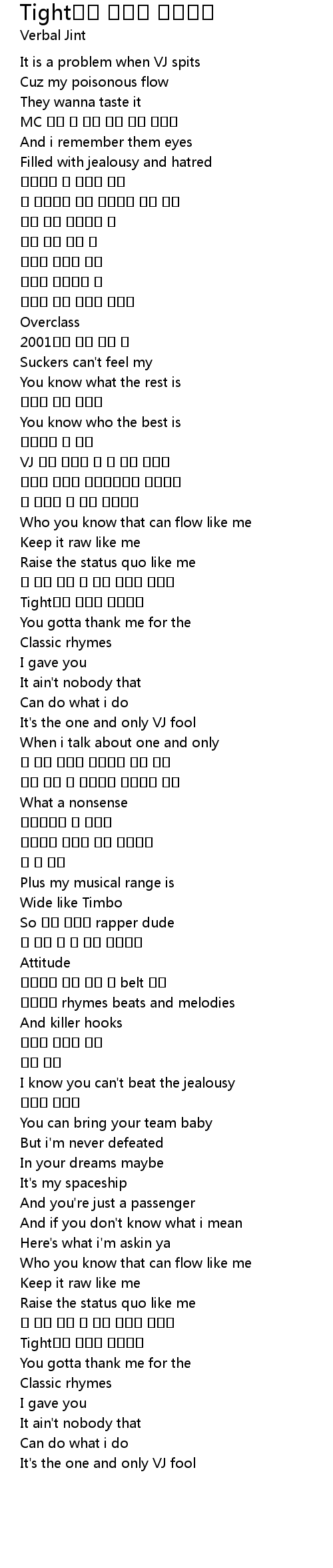 | [02:10.40] | Tight이란 낱말의 존재이유 |