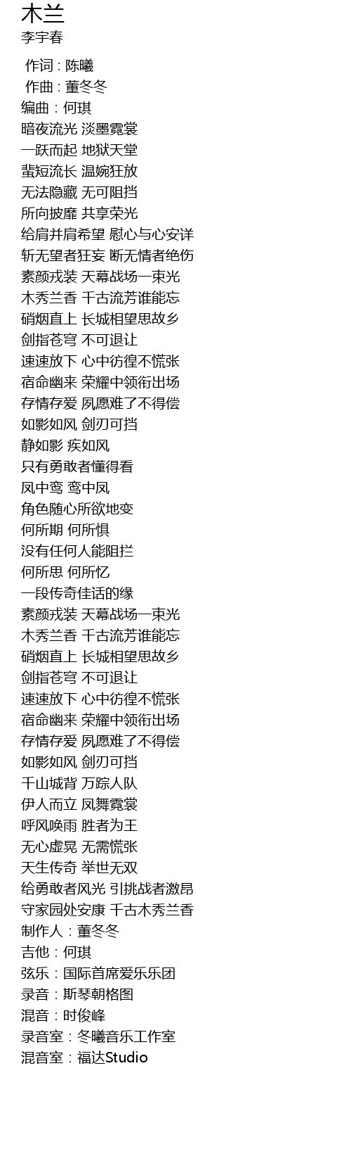 | [00:53.19] | 素颜戎装 天幕战场一束光 |
