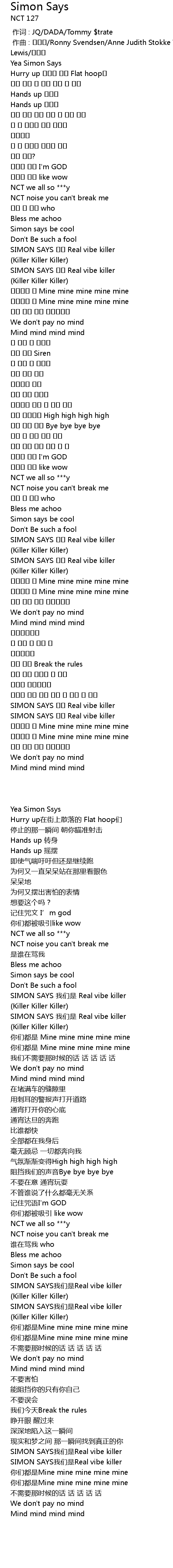 | [01:56.30] | SIMON SAYS 우린 Real vibe killer |
