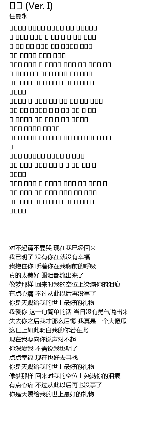 | [01:39.14] | 너는 나에게 하늘이 내게 준 이세상 가장 큰 선물이죠 |