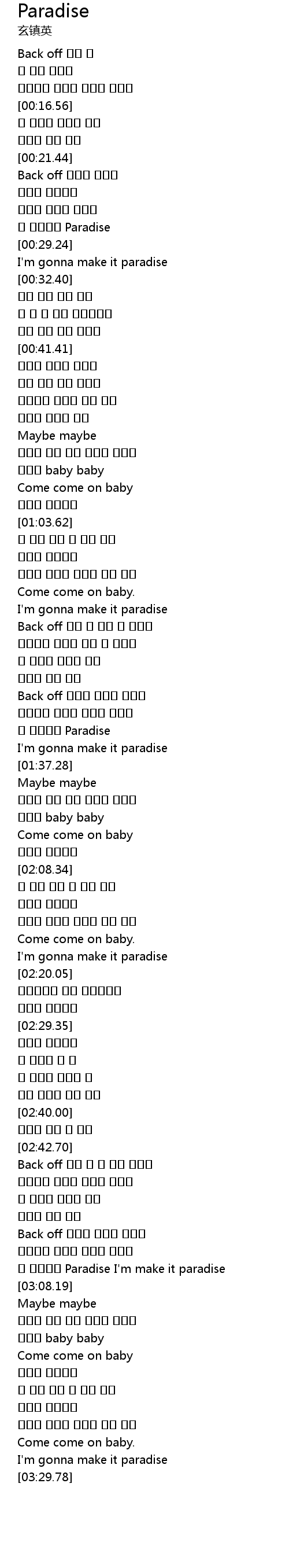 | [03:03.94] | 늘 그려왔던 Paradise I'm make it paradise |