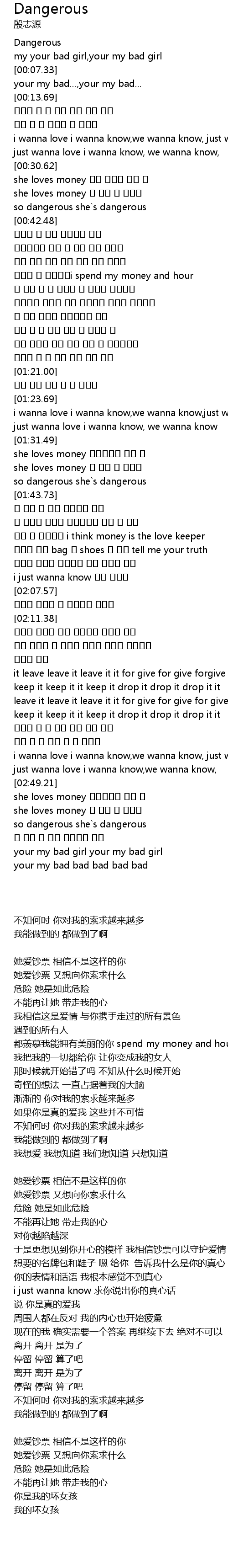 | [00:00.34] | Dangerous |