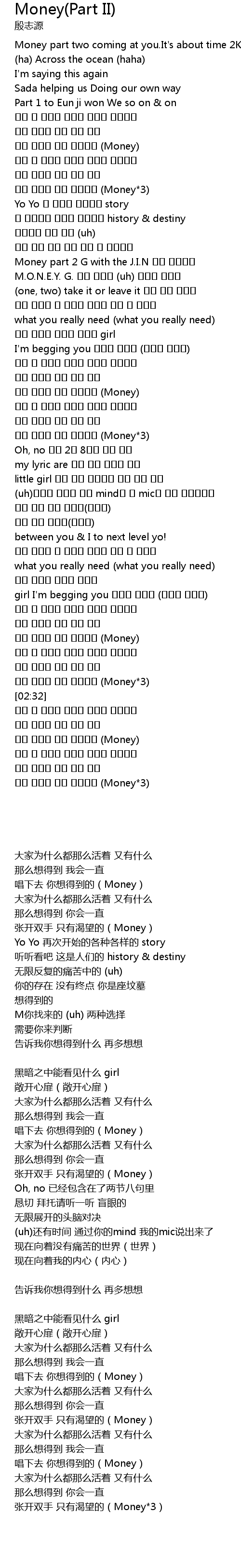 | [02:27] | 손을 벌리지 오직 원하는건 (Money*3) |