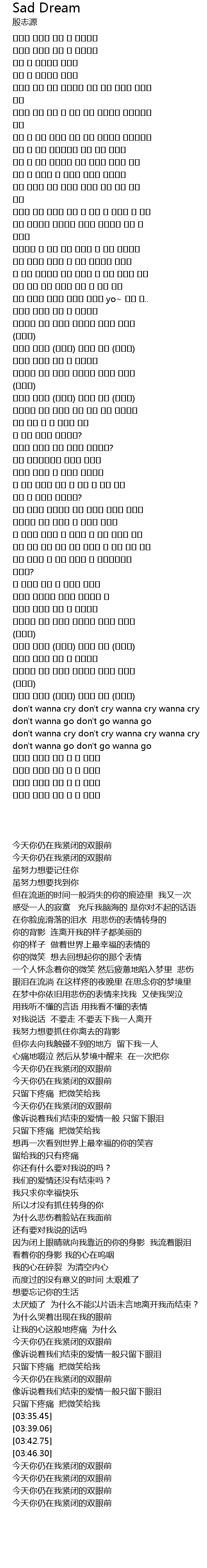| [03:35.45] | don't wanna cry don't cry wanna cry wanna cry |
