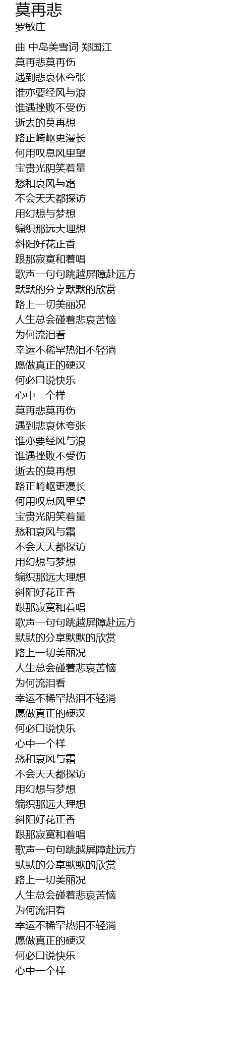 | [01:32.26] | 莫再悲莫再伤 |