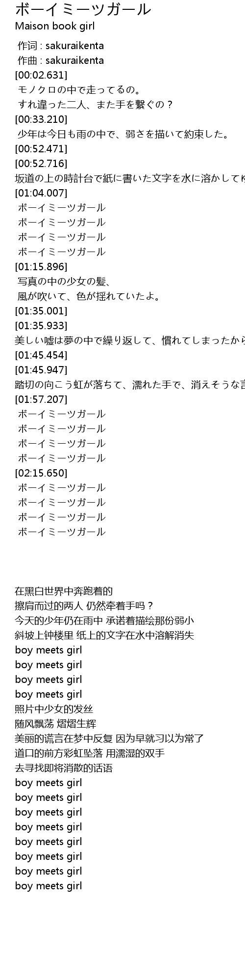 | [00:01.000] | zuò qǔ : sakuraikenta |