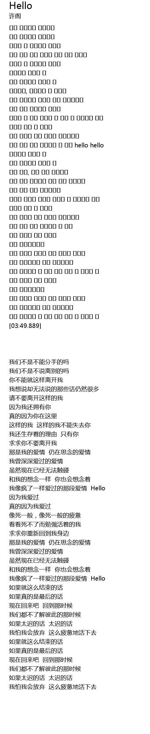 | [02:40.840] | 我像疯了一样爱过的那段爱情 Hello |