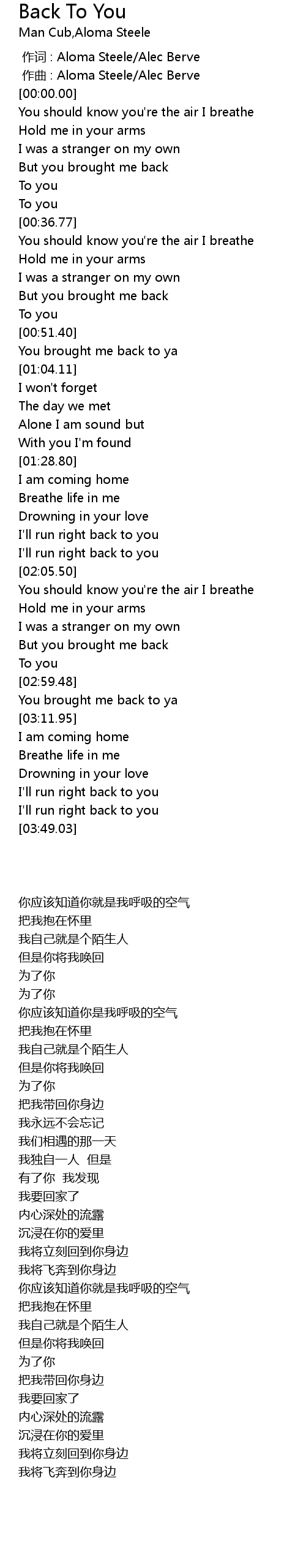 | [03:08.18] | You brought me back to ya |