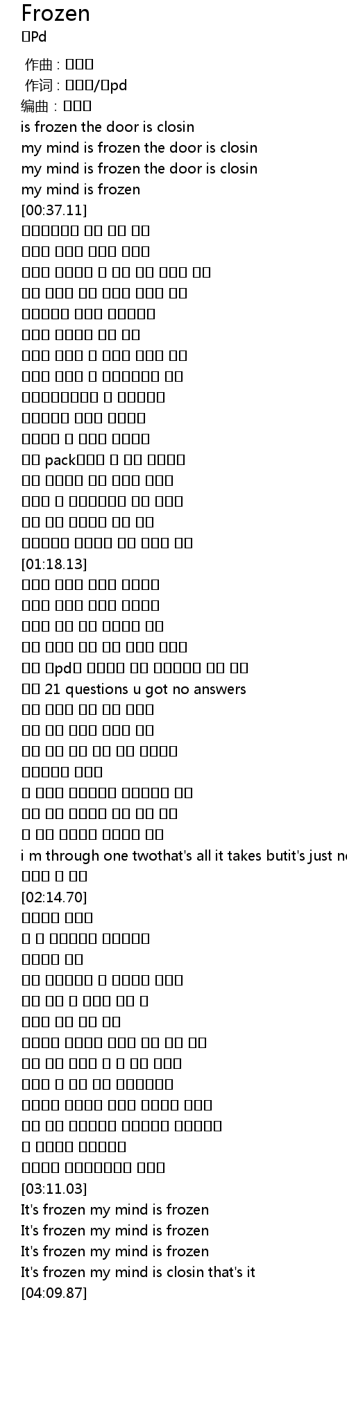 | [04:01.63] | It' s frozen my mind is frozen |