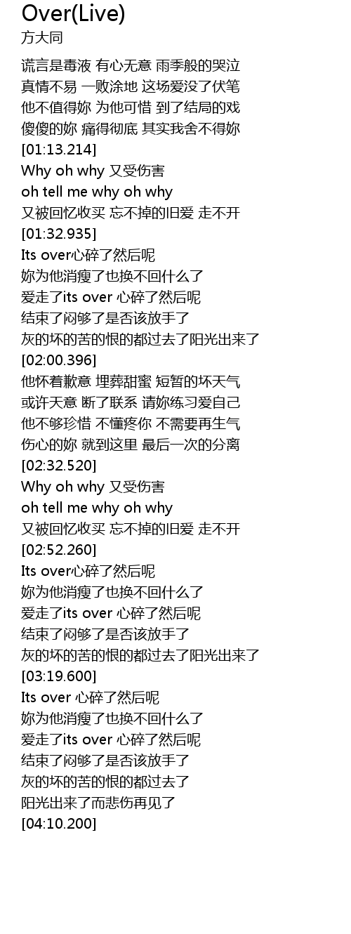| [01:44.586] | 爱走了its over 心碎了然后呢 |