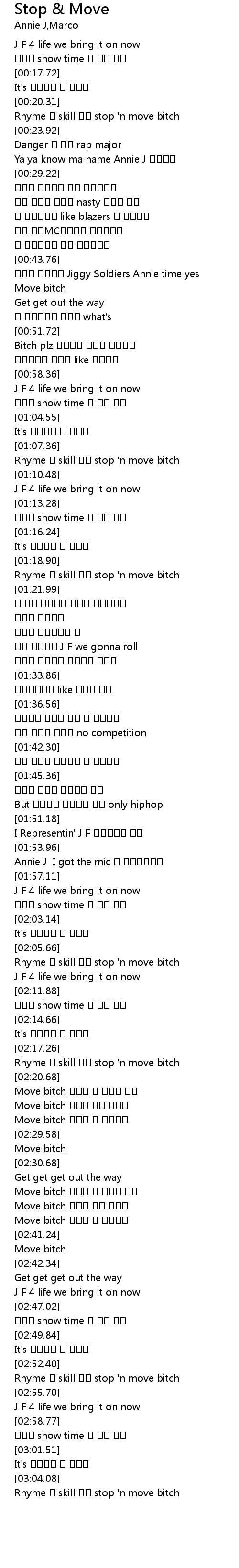 | [00:21.39] | Rhyme 과 skill 모두 stop 'n move bitch |