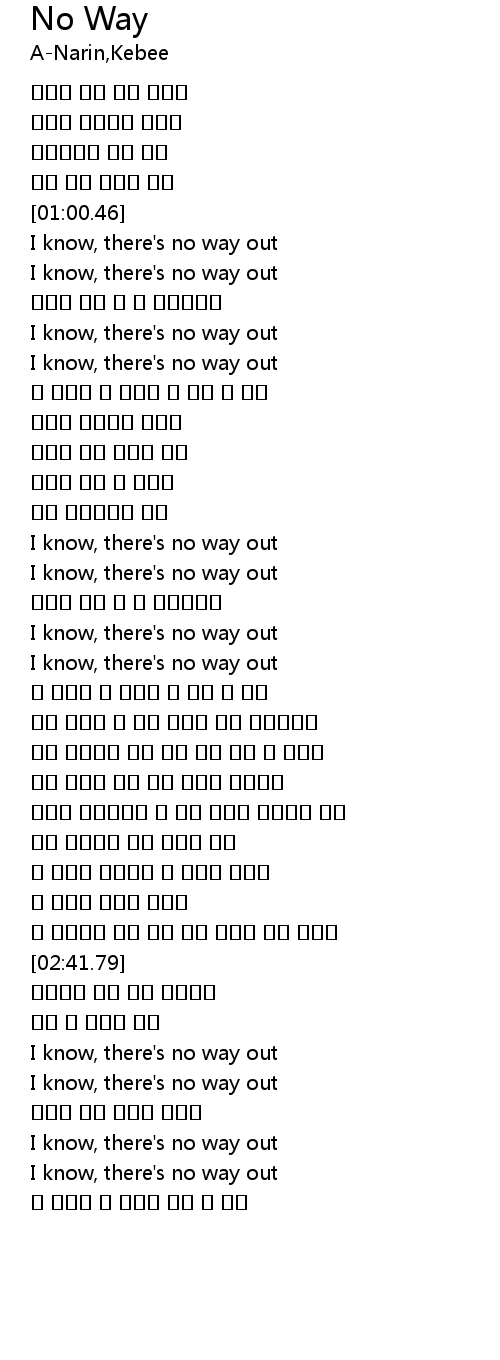 | [02:58.77] | I know, there' s no way out |