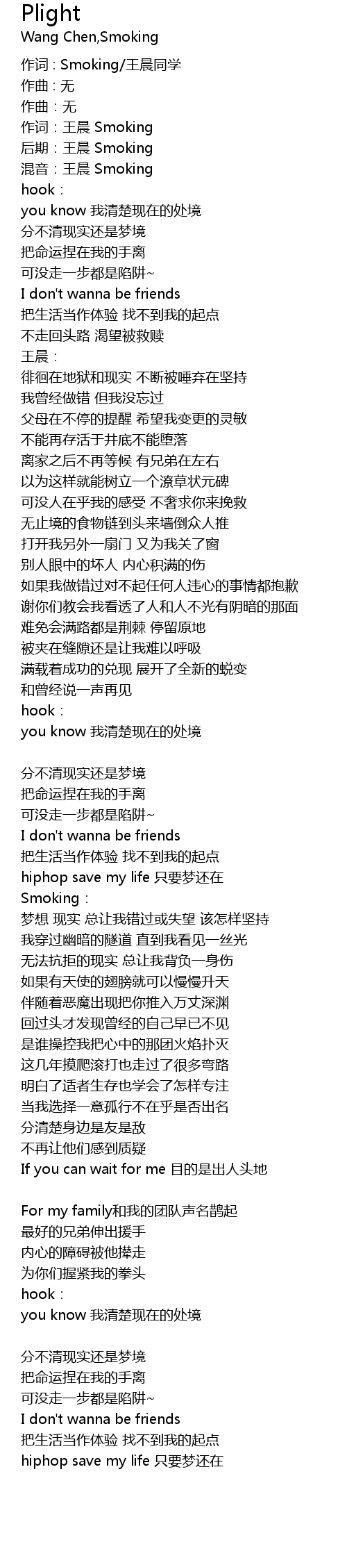 | 作词 : Smoking/王晨同学 | |