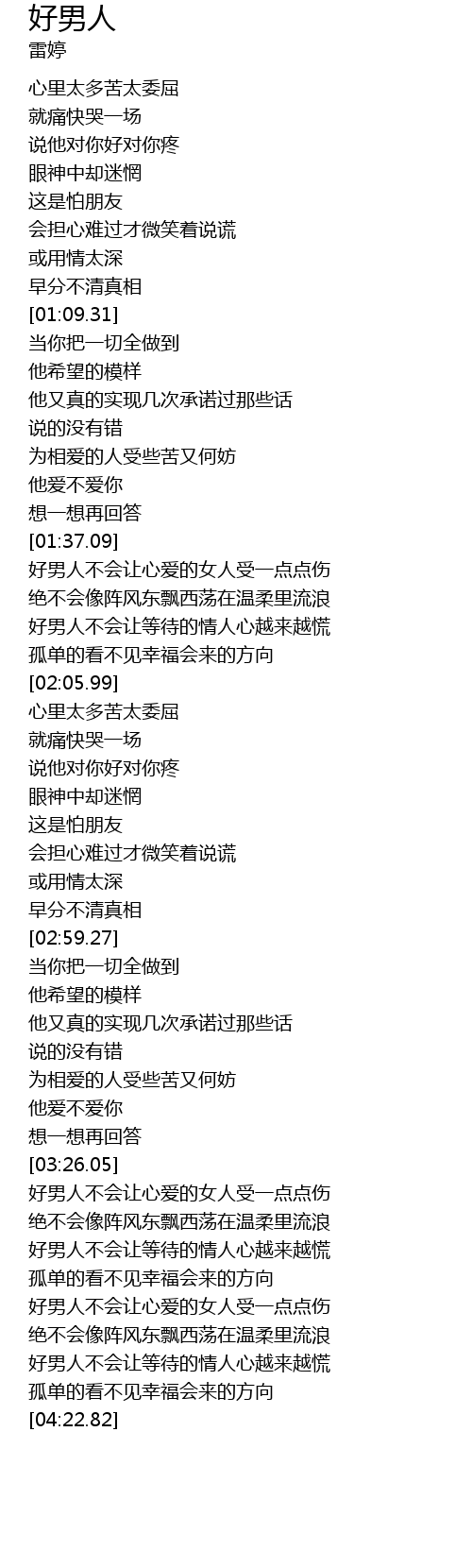 | [03:40.90] | 好男人不会让等待的情人心越来越慌 |