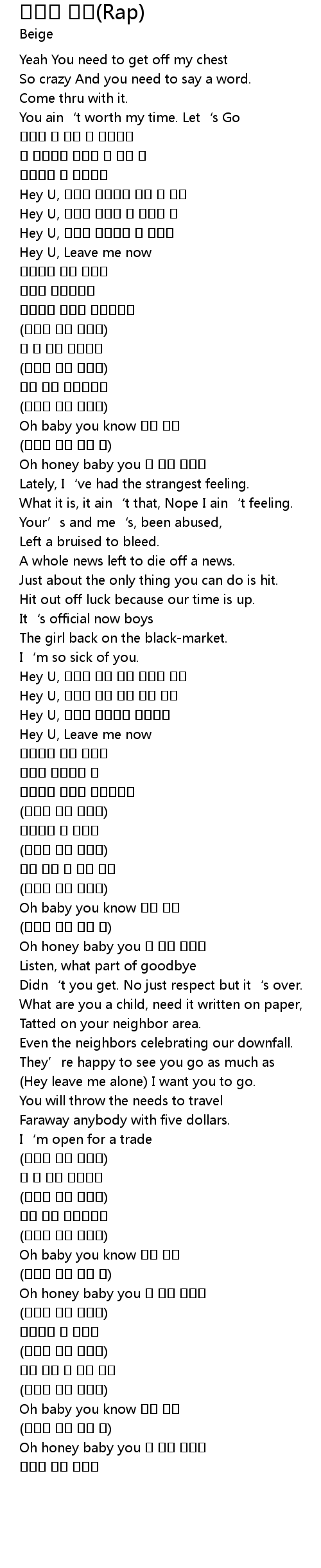 | [01:45.73] | Hey U, 시끄러 네가 나를 어떻게 알아 |