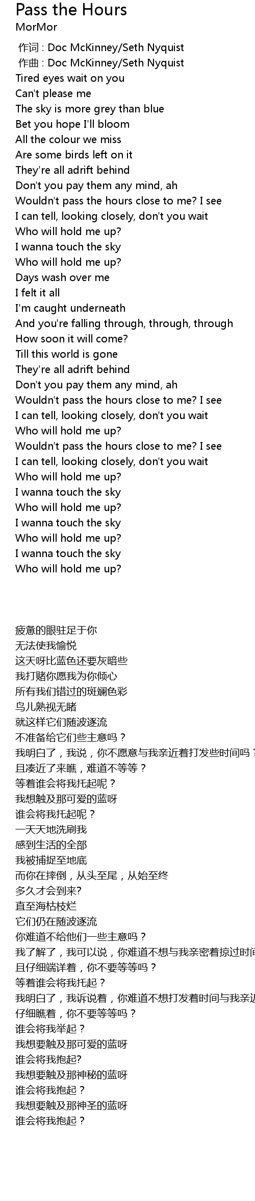 | [00:00.000] | zuo ci : Doc McKinney Seth Nyquist |