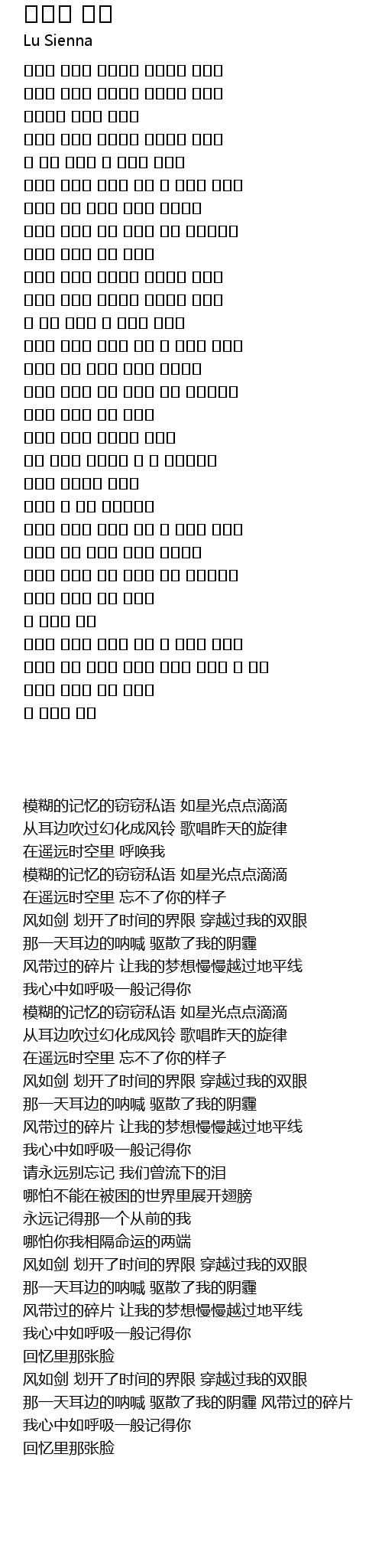 | [00:13.640] | 模糊的记忆的窃窃私语 如星光点点滴滴 |
