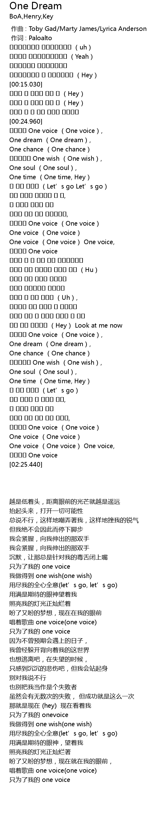 | [01:00.540] | 노래불러 One voice (One voice) |