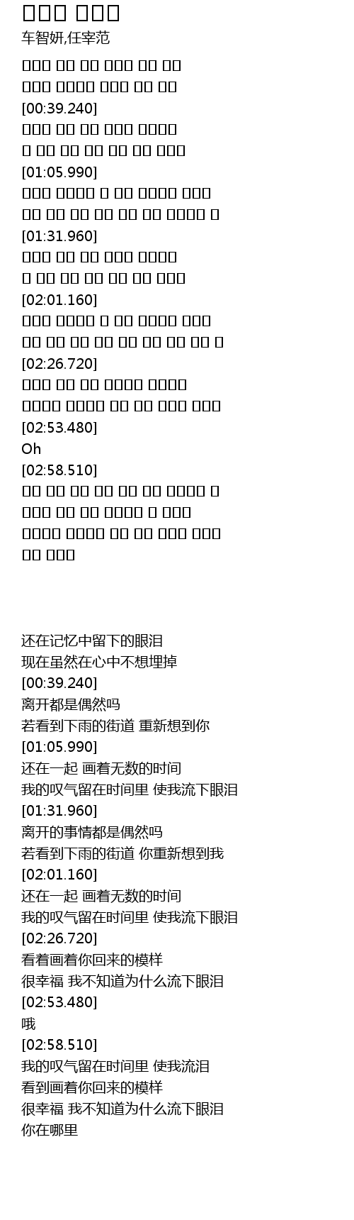 | [00:15.760] | 지금도 기억 속에 남겨둔 그대 눈물 |