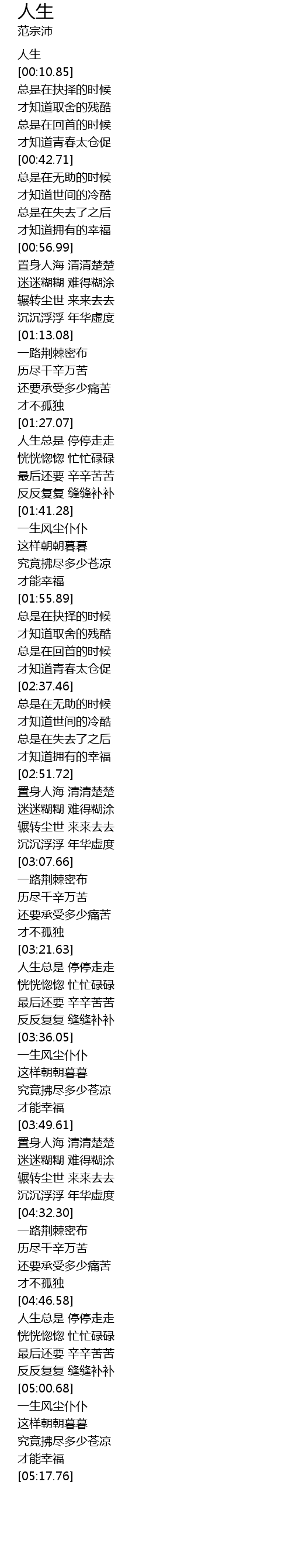| [04:46.92] | rén shēng zǒng shì tíng tíng zǒu zǒu |