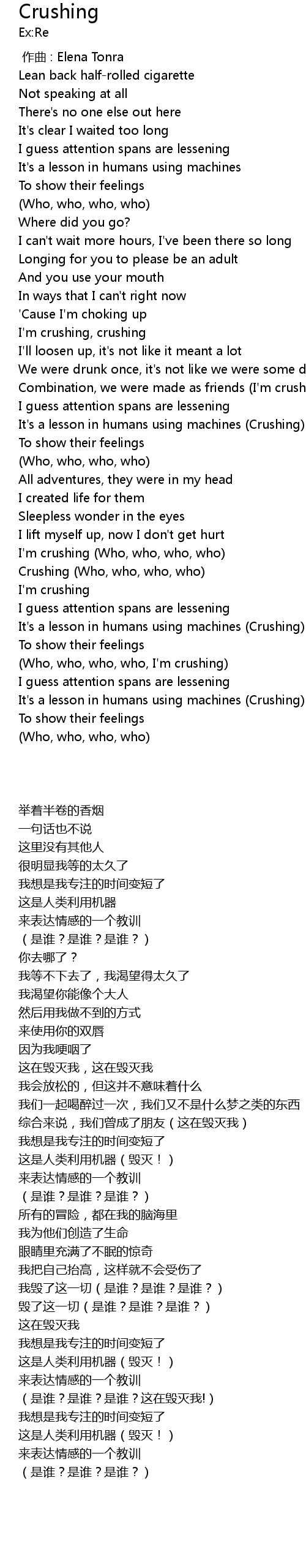 | [03:21.852] | Crushing (Who, who, who, who) |