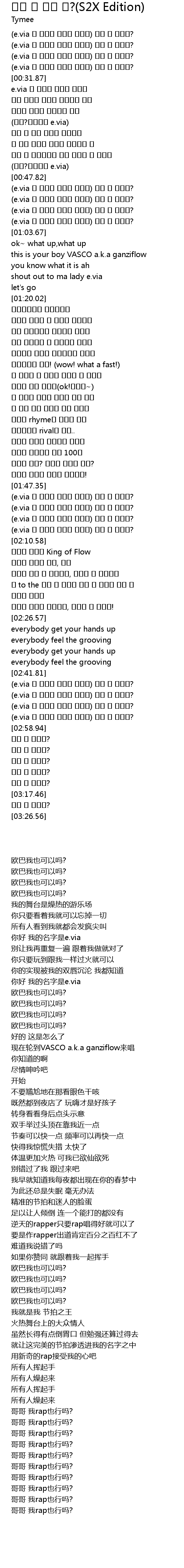 | [02:50.84] | (e.via 내 무대는 뜨거운 놀이터) 오빠 랩 해도돼? |
