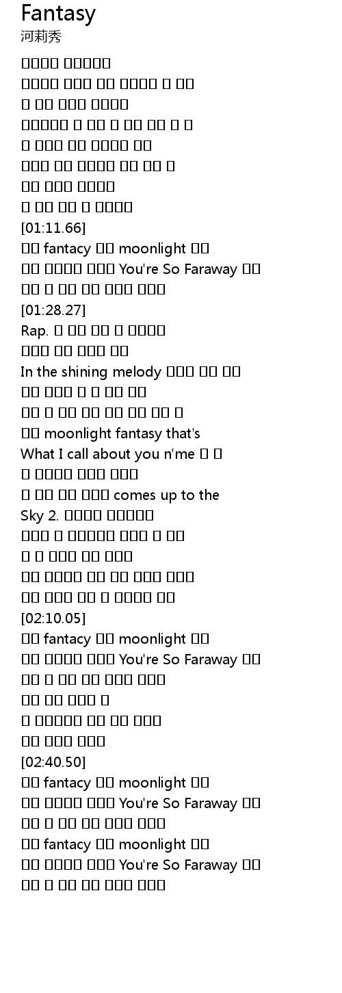 | [01:14.35] | 이젠 fantacy 여기 moonlight 그냥 |