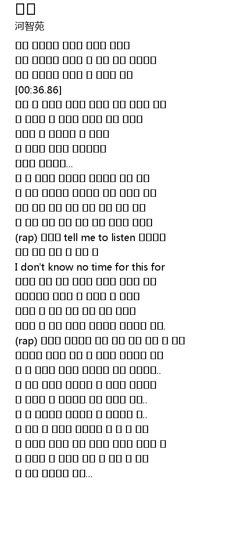 [01:36.07] (rap) 메마른 우물가에 물을 갖다 붓듯 모를 내 사랑