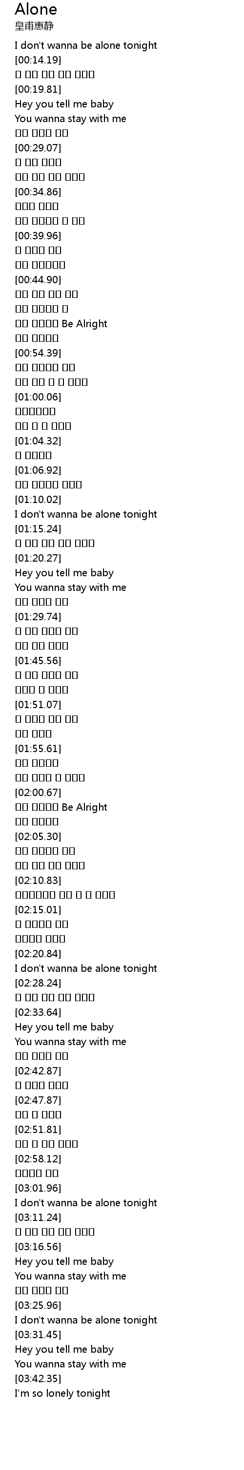 | [03:27.40] | I don't wanna be alone tonight |