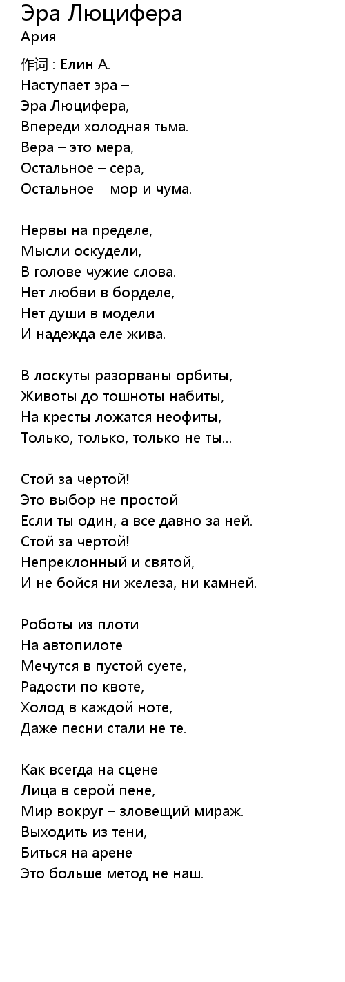 Эра Люцифера 歌词