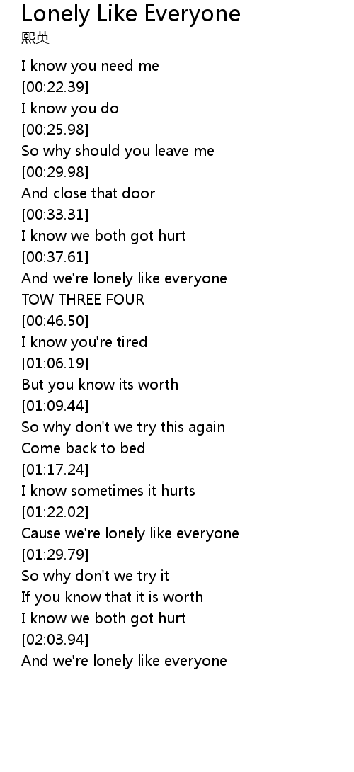 | [00:39.86] | And we're lonely like everyone |