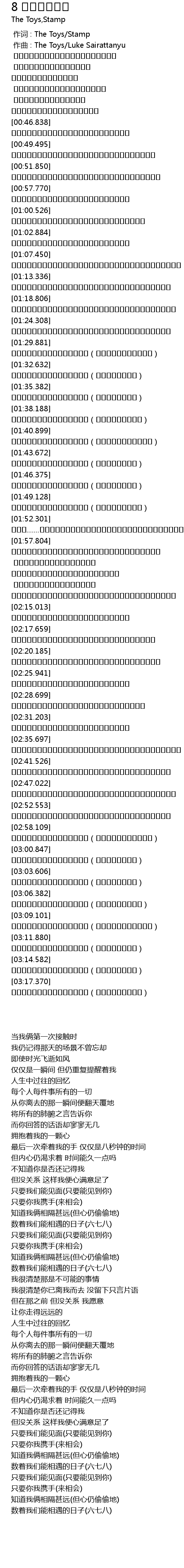 | [00:00.000] | 作词 : The Toys/Stamp |