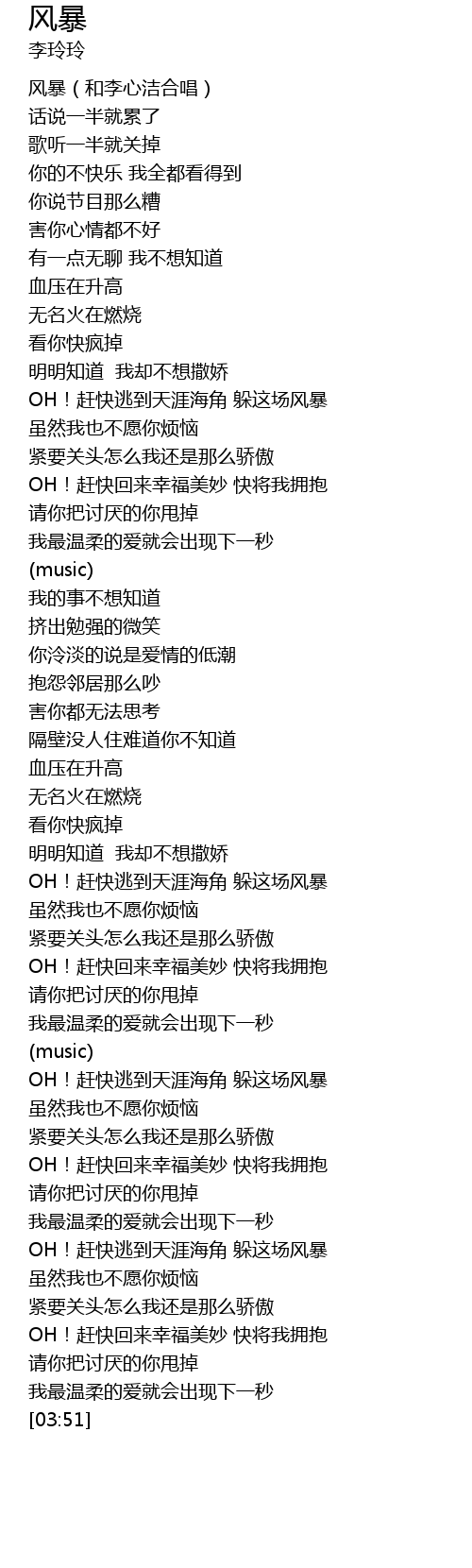 | [00:00] | 风暴(和李心洁合唱) |