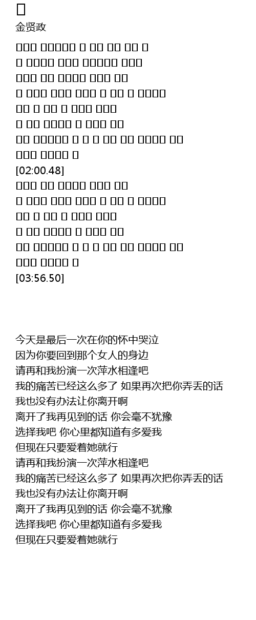 | [03:36.27] | 나를 선택했겠지 니 맘 다 알아 나를 사랑하는 만큼 |