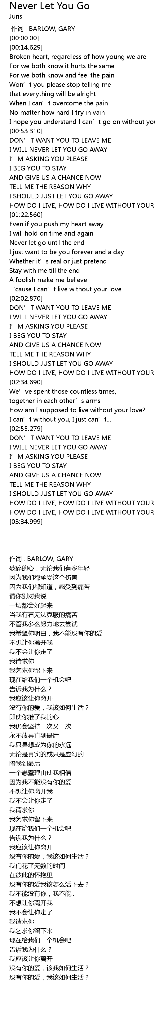 | [00:54.200] | DON' T WANT YOU TO LEAVE ME |