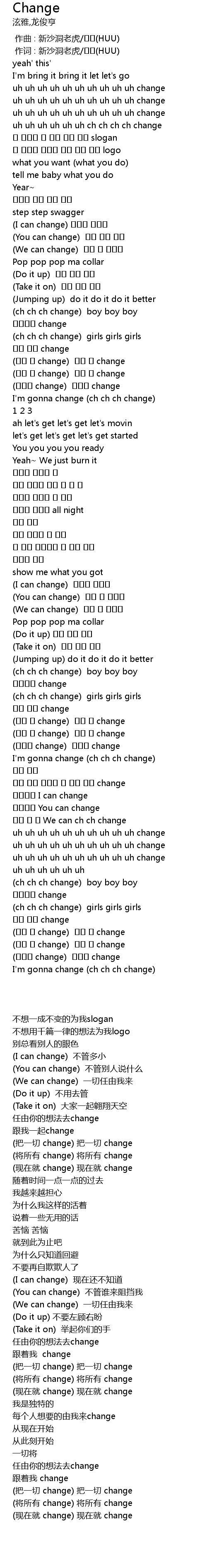 | [00:30.380] | uh uh uh uh uh uh ch ch ch ch change |