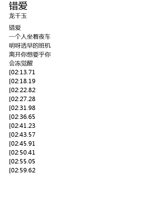 | [01:41.32][02:55.05][03:31.83] | 一生错爱 |