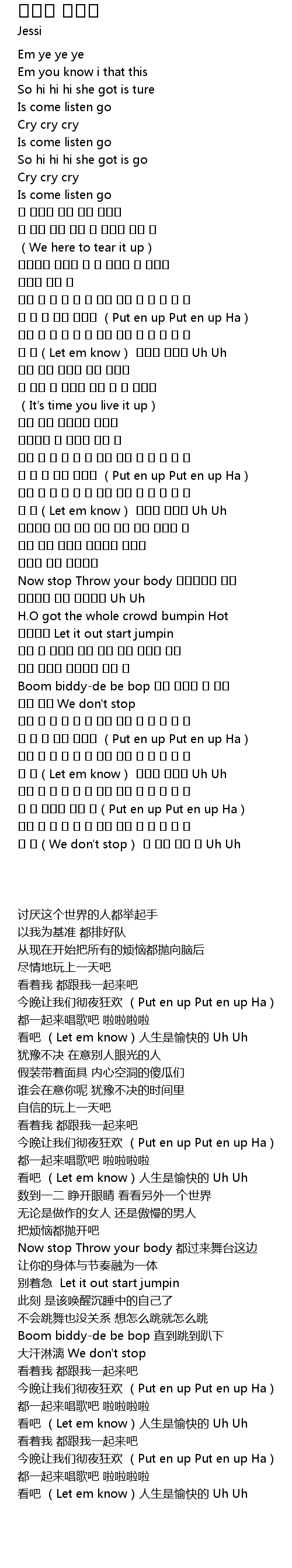 | [03:00.840] | 今晚让我们彻夜狂欢 (Put en up Put en up Ha) |