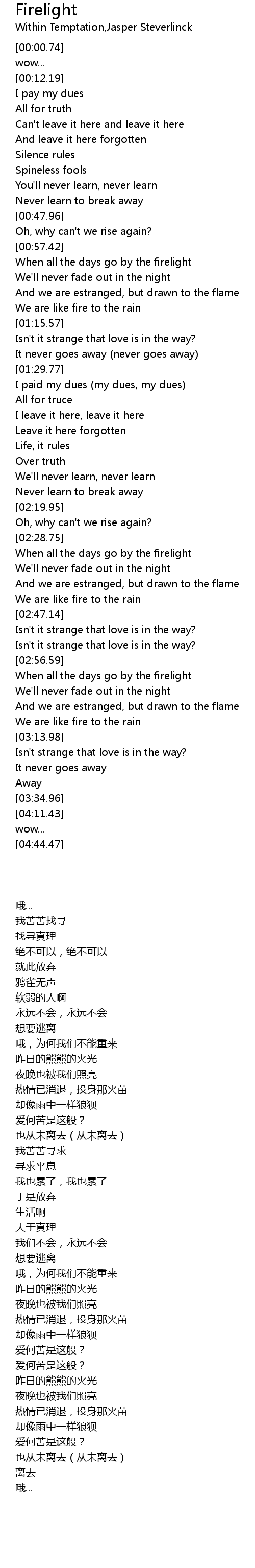 Firelight 歌词