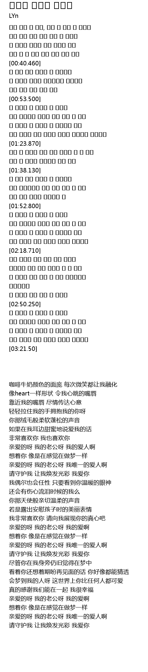| [02:53.810] | 내 자기야 내 여보야 내 사랑아 |