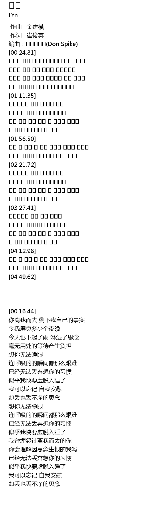 그대가 나를 떠나고 혼자라는 사실 때문에 |