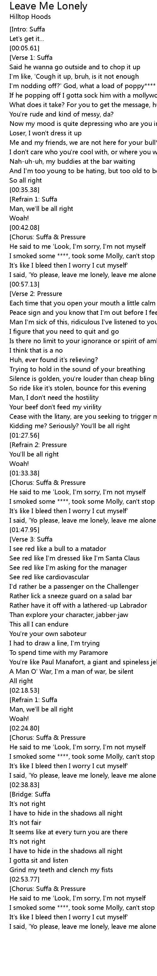 [00:52.47] I said, 'Yo please, leave me lonely, leave me alone and lonely!'
