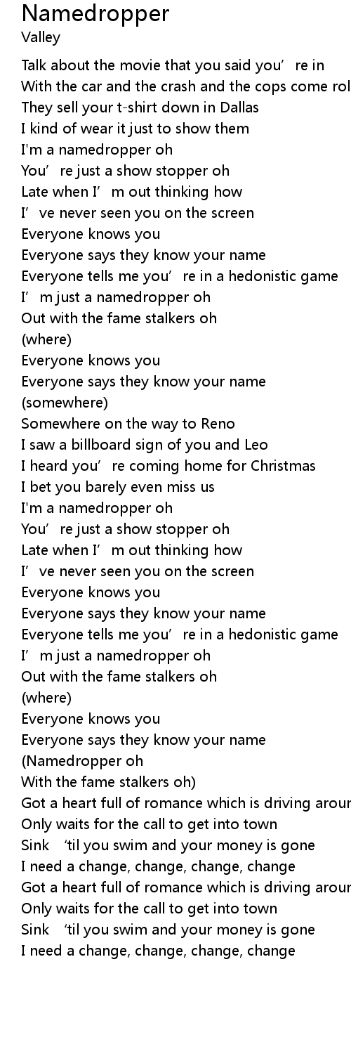 | [00:33.38] | I' m a namedropper oh |