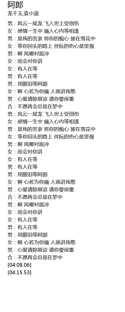 | [03:42.05] | 男:用眼泪等阿郎 |