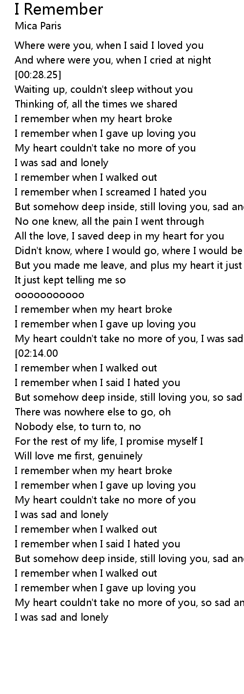 I remember when my heart broke |