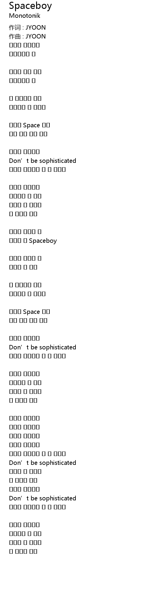 作词 : JYOON