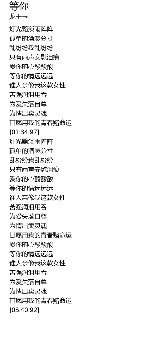| [02:29.94] | deng ni de qing yuan yuan yuan |