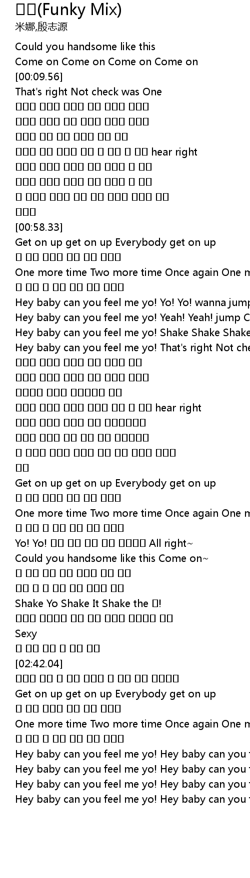 | [00:59.94] | Get on up get on up Everybody get on up |